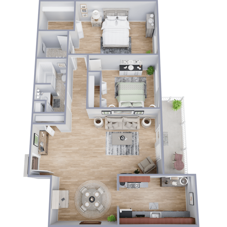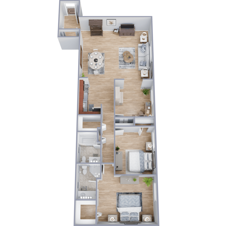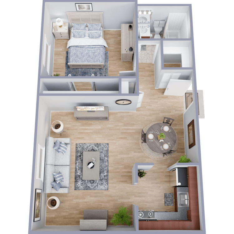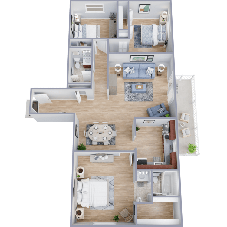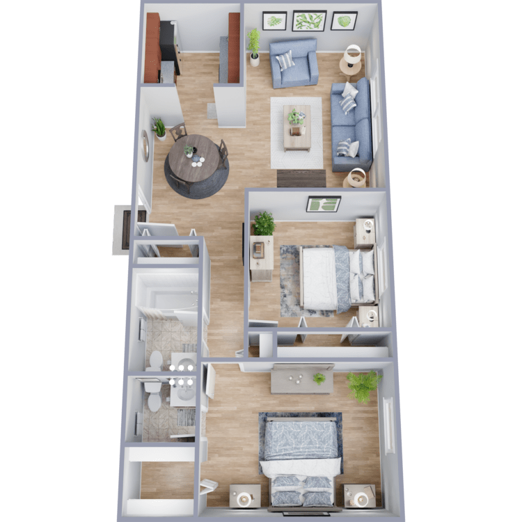 Our apartments for rent are available in one, two, and three-bedroom options. They offer a comfy living experience with convenience and practicality. The living spaces are designed thoughtfully to cater to your everyday needs. Each apartment has air conditioning, extra storage, a balcony or patio, and an all-electric kitchen with a dishwasher and microwave.